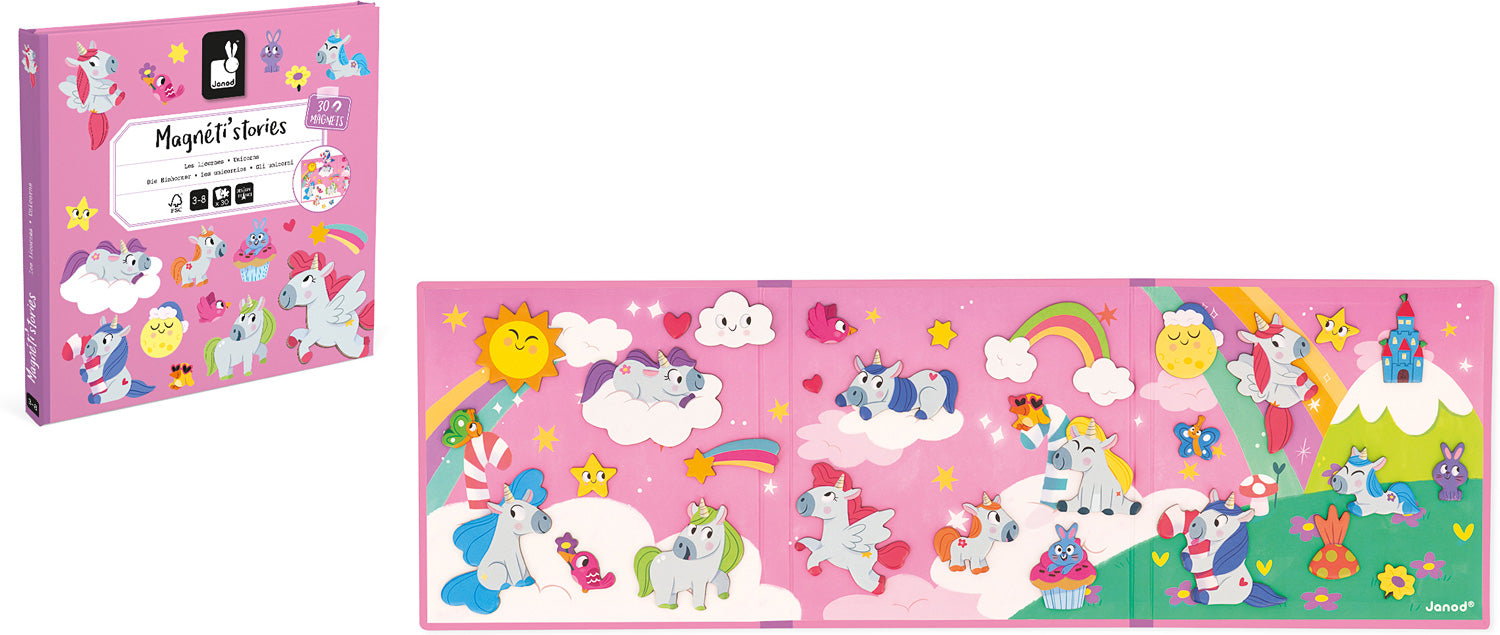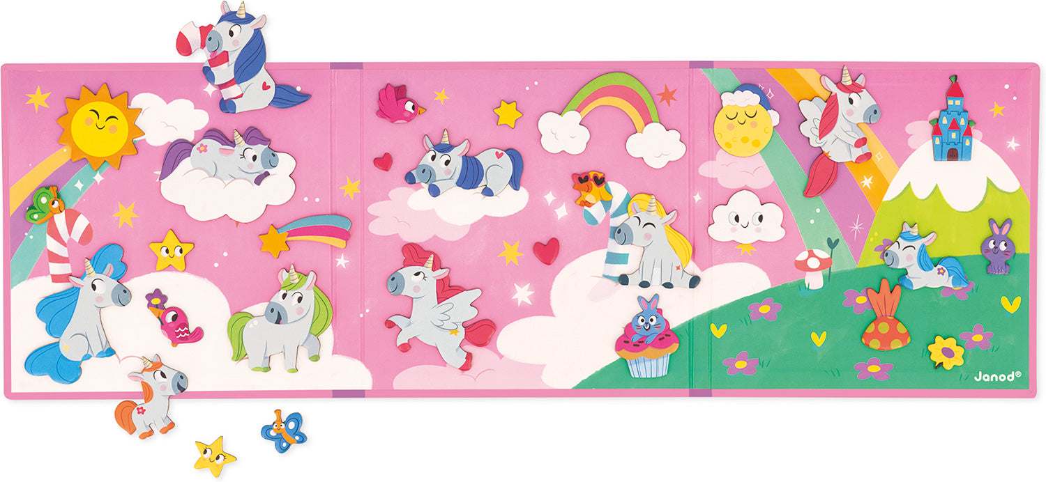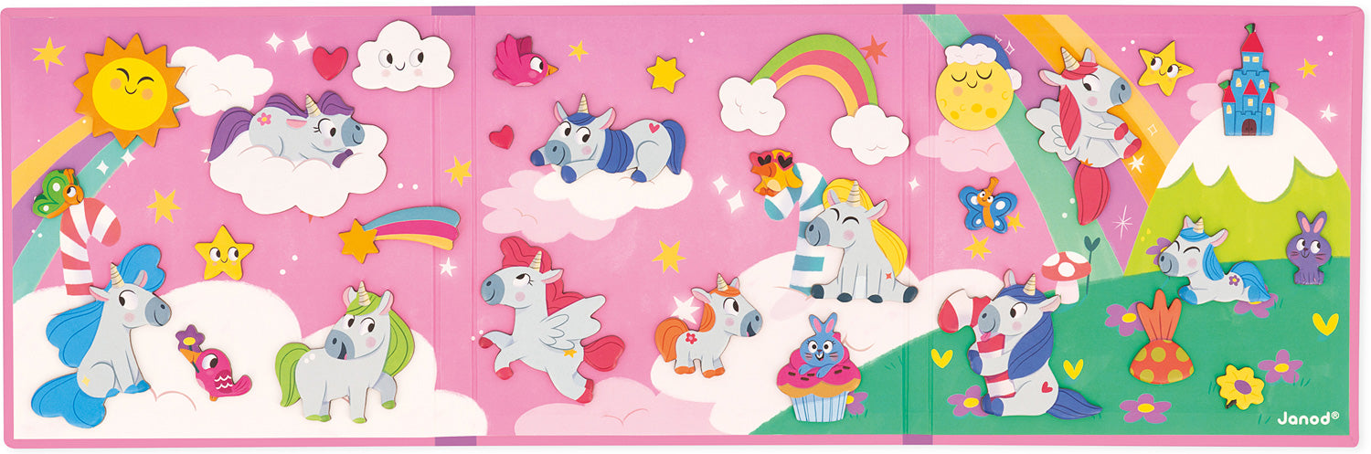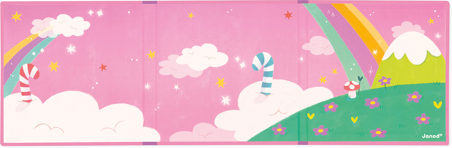 Enter a world of magical daydreams with this whimsical playset! Imaginative kiddos develop language and fine motor skills as they move personality-filled unicorns, stars, bunnies, and birds around the magnetic fantasy world scene. We love that it folds up and fits easily into a backpack or purse for entertainment anytime, anywhere.