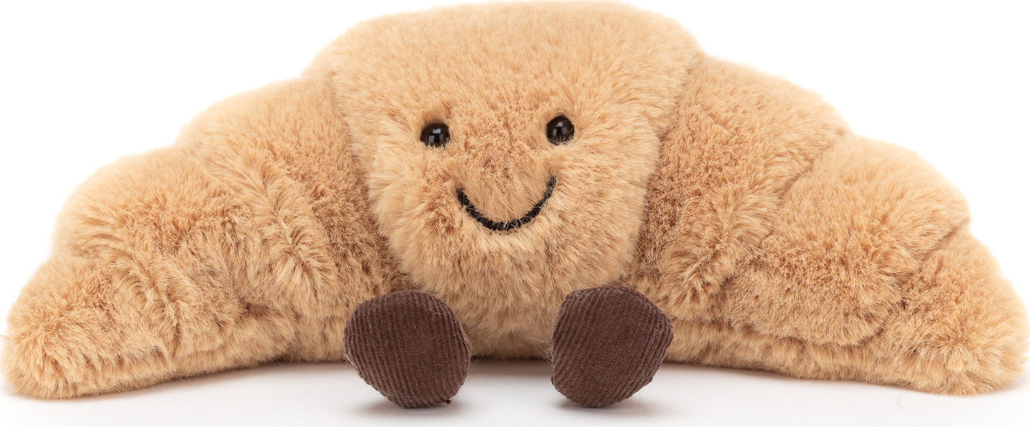 Bonjour, mes amis! Un petit dejeuner? Amuseable Croissant is a crusty cutie - all golden and bobbly with soft pastry knobbles. This scrummy scamp has a big sunny smile and cordy boots au chocolat! Rise and shine with a cuddly croissant.