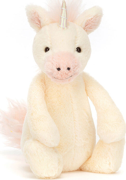 Bashful Unicorn is heavenly to hold, in souffle-soft vanilla fur. This fabulous pal is wonderfully detailed, with strawberry-sundae nose and ears, and silky mane and tail. And check out that squashy holographic horn, shining with magical light!