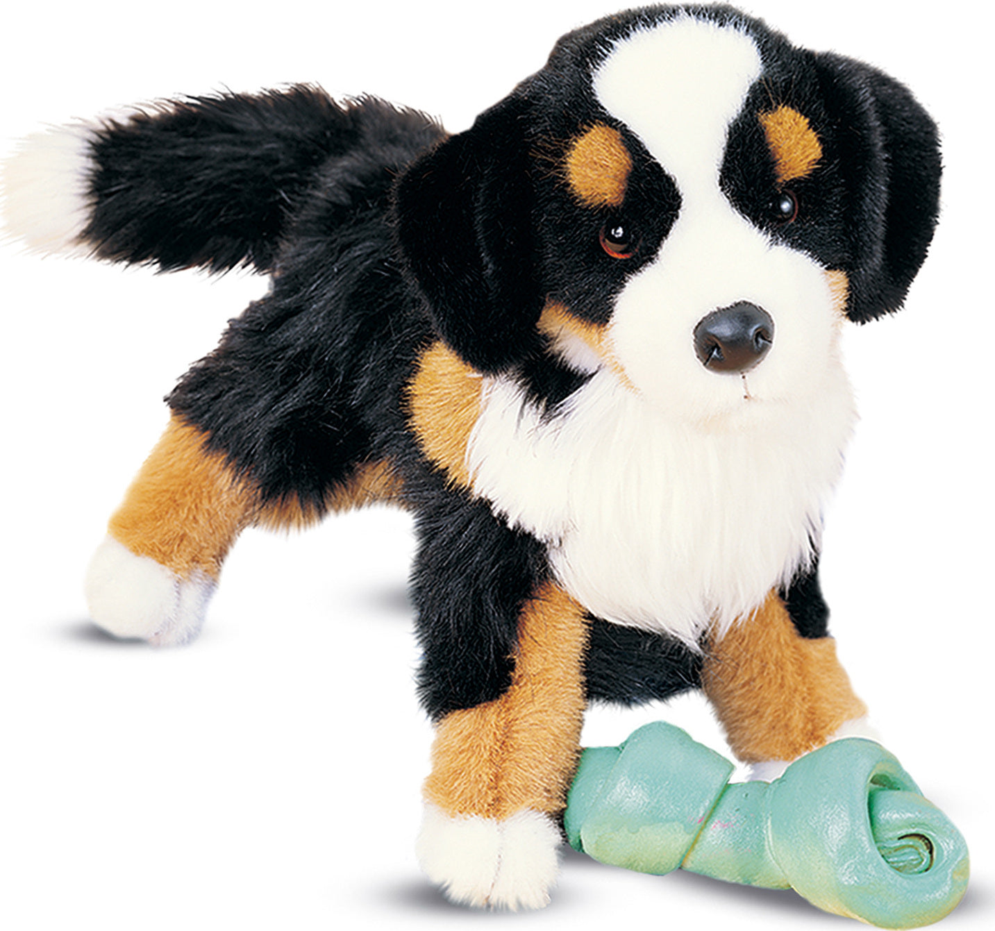 Trevor Douglas' plush Bernese Mountain Dog emanates the charm of a real puppy with his rounded features and soulful brown eyes! Featuring a long-haired, tri-colored coat crafted with high quality, designer materials, Trevor is a lifelike plush representation of the handsome Berner breed. Let him steal away your heart with his loving expression and huggably soft body!