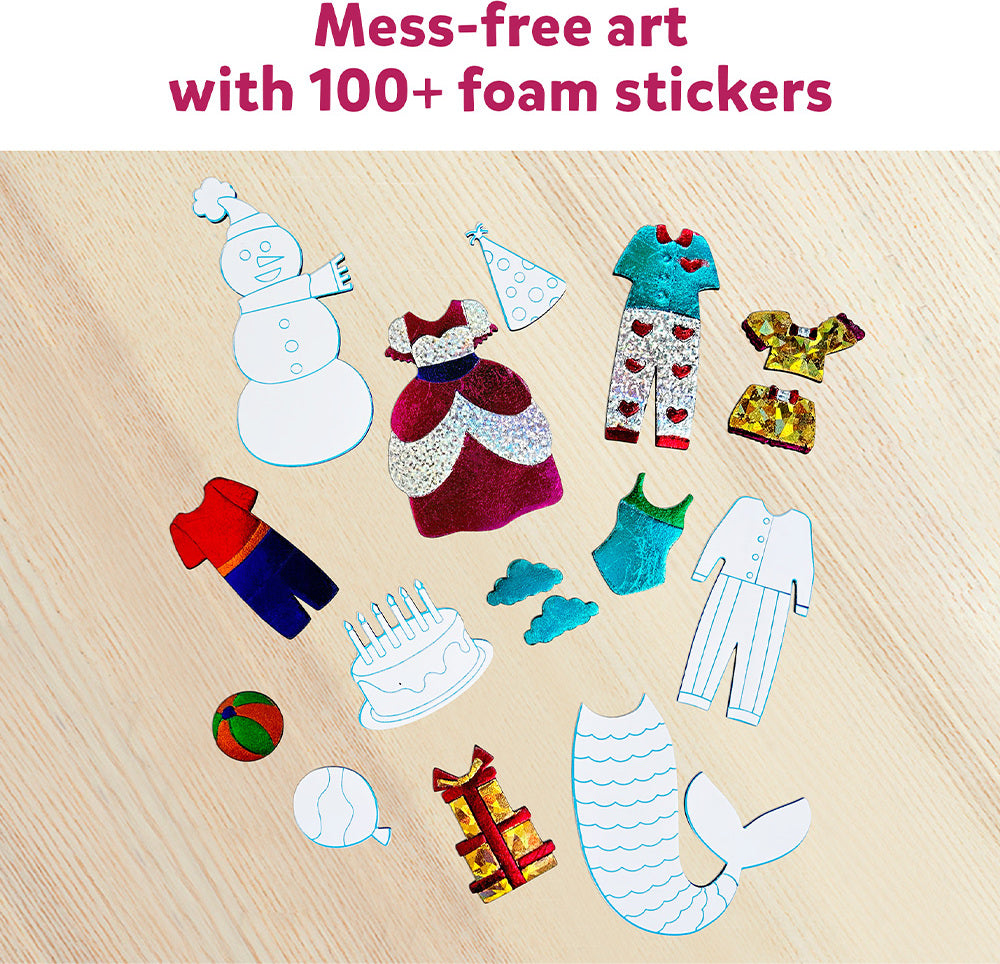 Foil Fun Dress Up by Skillmatics is a magical, mess-free art activity designed to inspire hours of sparkly fun. Foil Fun encourages creativity and strengthens fine-motor skills through play. Imagination will soar as children create unique foil pictures featuring all kinds of ways to dress up characters with costumes, fancy dresses, and more! Select a picture canvas, choose stickers and apply color using sparkly foil sheets. Add as many colorful stickers as needed to bring the canvases to life. Ages 4-9.