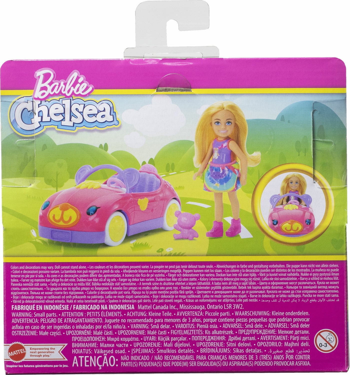 - Young imaginations can hit the open road with Barbie Chelsea doll and her teddy bear with this toy car playset!