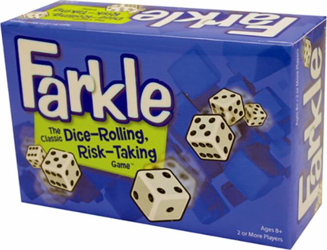 Farkle Patch Products Become a Farkle fanatic with this classic dice-rolling, risk-taking game.Take a risk, and keep rolling to build your score.Or play it safe so you don't lose your points in a Farkle.It's a fight to the finish in this fabulously fun game of strategy and luck!Contents: * 6 dice* shaker cup* score pad* rules