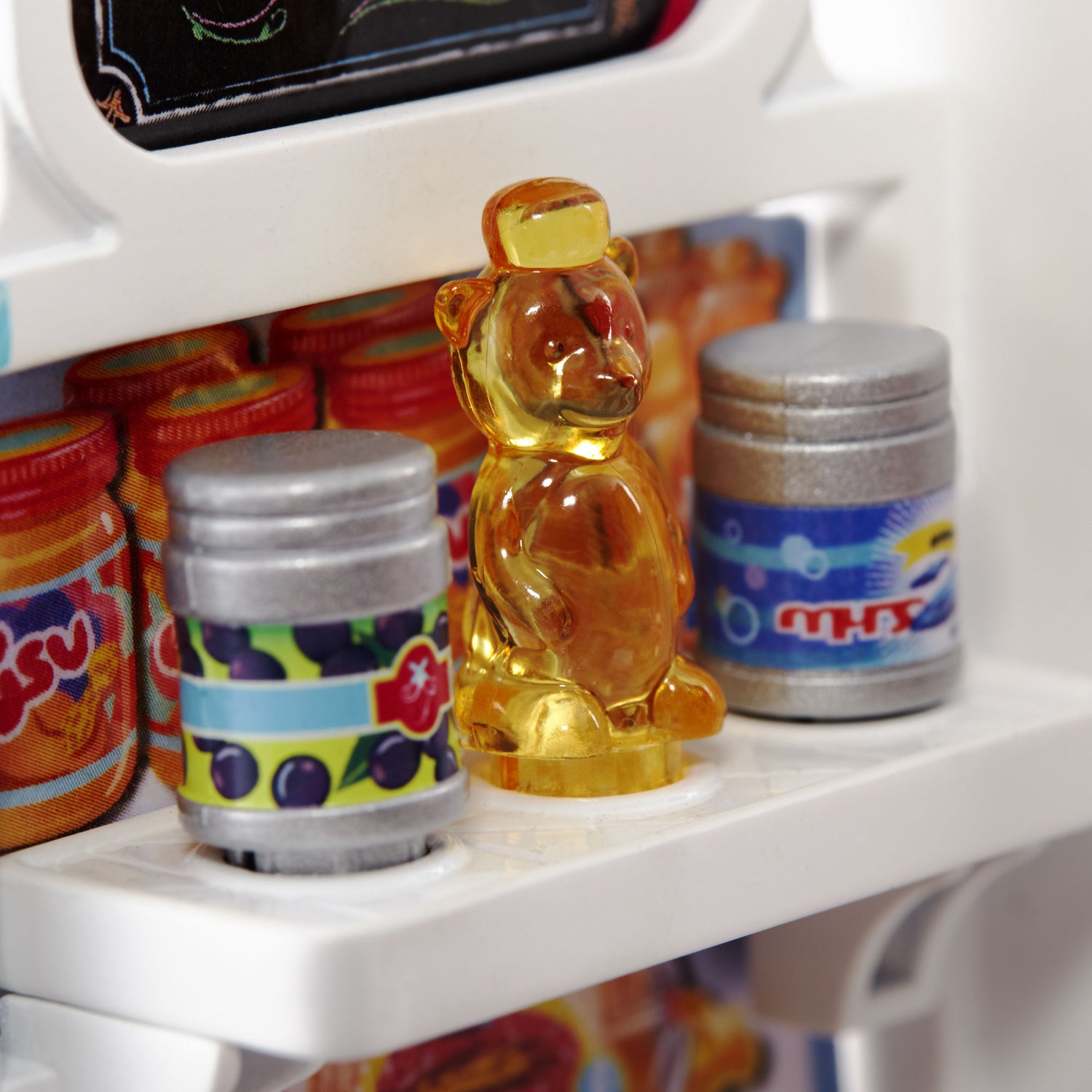 - Shop the display: three sides have shelves for food items, a bin for produce and a scale that moves for role-play fun!