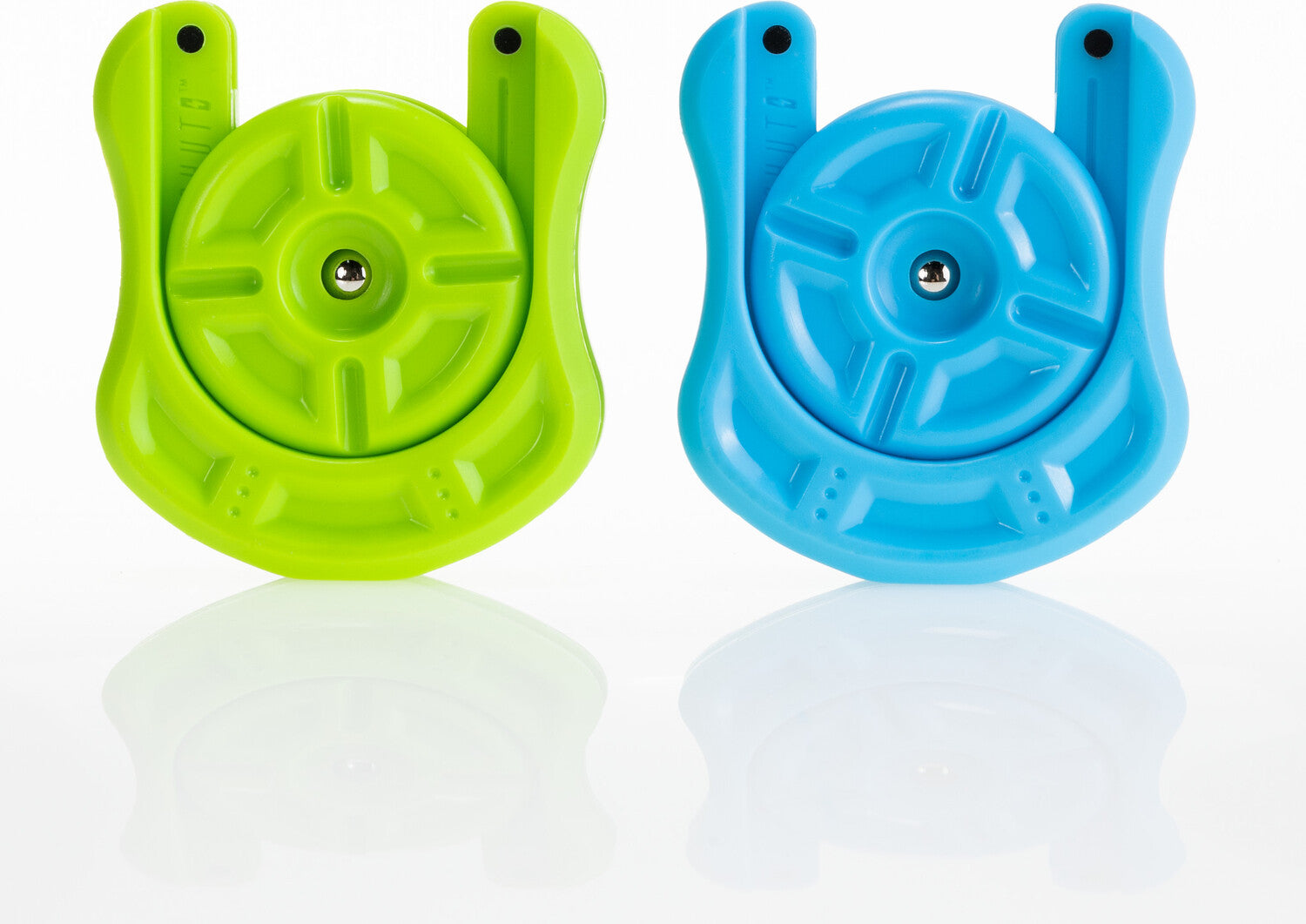 - Includes Knockout Rail, 2 Launchers (1 green, 1 blue), 10 Mag-Pods (5 green, 5 blue), reusable sticky pads