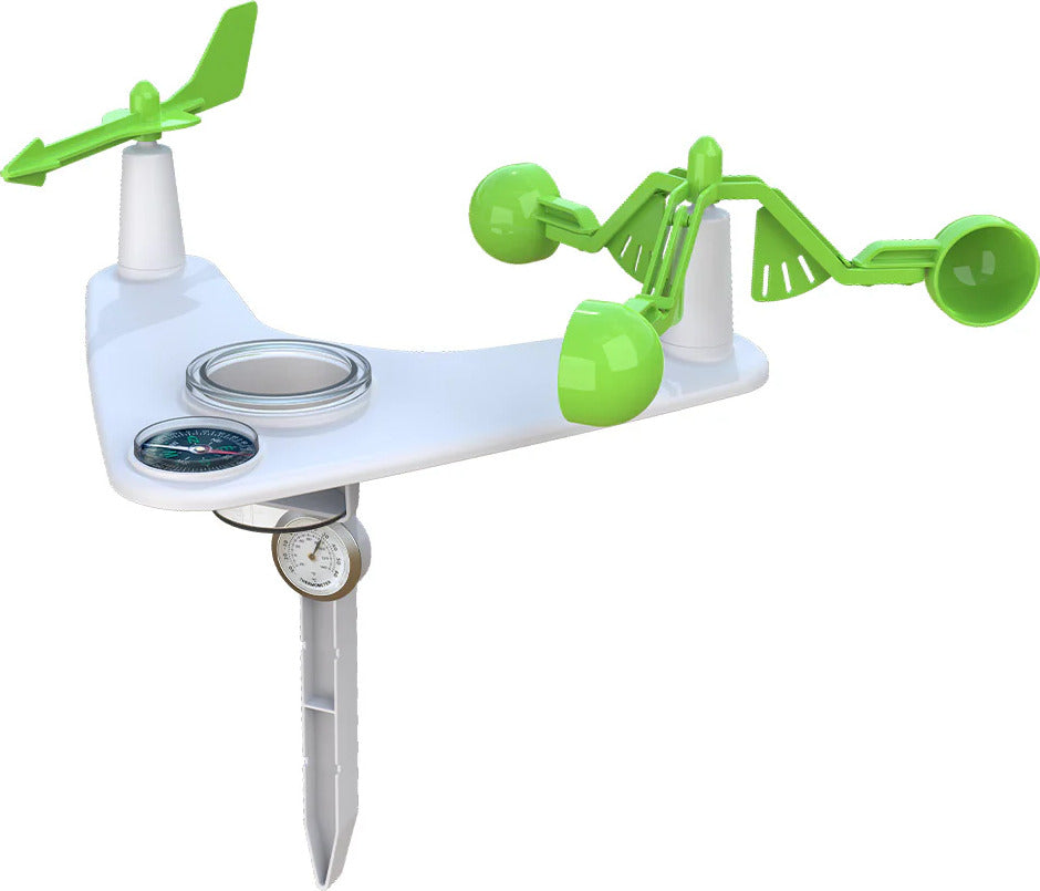 Install this sleek weather station outdoors and use the built-in wind vane, compass, rain gauge, anemometer (wind speed indicator), and thermometer to measure weather data. The manual takes young scientists through eight hands-on experiments and includes pages to record observations. Bonus: Supplemental experiments using household experiments available online!